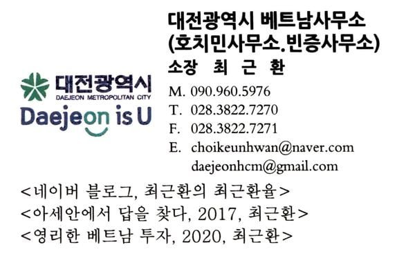 홈 > 전체업종 > 주요기관 상호명 대전광역시 베트남사무소 주소 Diamond Plaza 1009B 10F., 34 Lê Duẩn, Bến Nghé, Quận 1, Hồ Chí Minh, 베트남 연락처 02838227270 DAEJEON METROPOLITAN CITY대표자 성명: 최근환 CHOI KEUN HWAN 회사 간략 소개: (호치민사무소.빈증사무소) 한상 회원사분들을 위한 혜택 업데이트: 5% (회원서비스 받은 조건: 한상 회원카드 소지) 📞 전화 🧭 길안내 🔗 홈페이지 주소 공유
